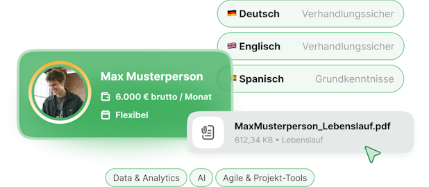 Erstelle dein Profil mit deinen Stärken, Fähigkeiten, Qualifikationen und Interessen. Wir übernehmen den Rest.